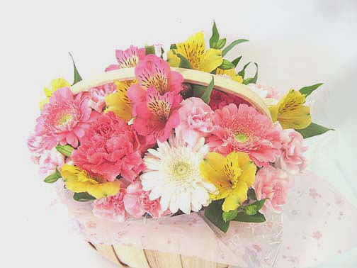 花材 | 生花、、カーネーション、アルストロメリア他 | 容器 | 木製 | ||||||